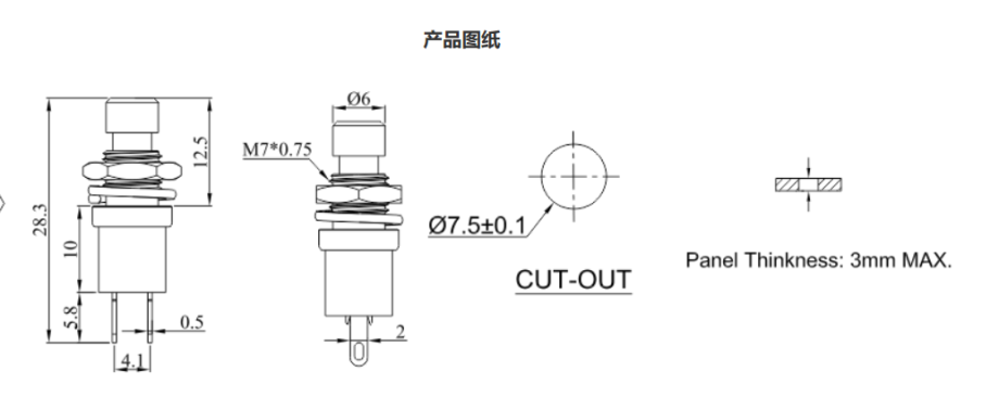 PB按鍵開關(guān)參數(shù)及圖紙